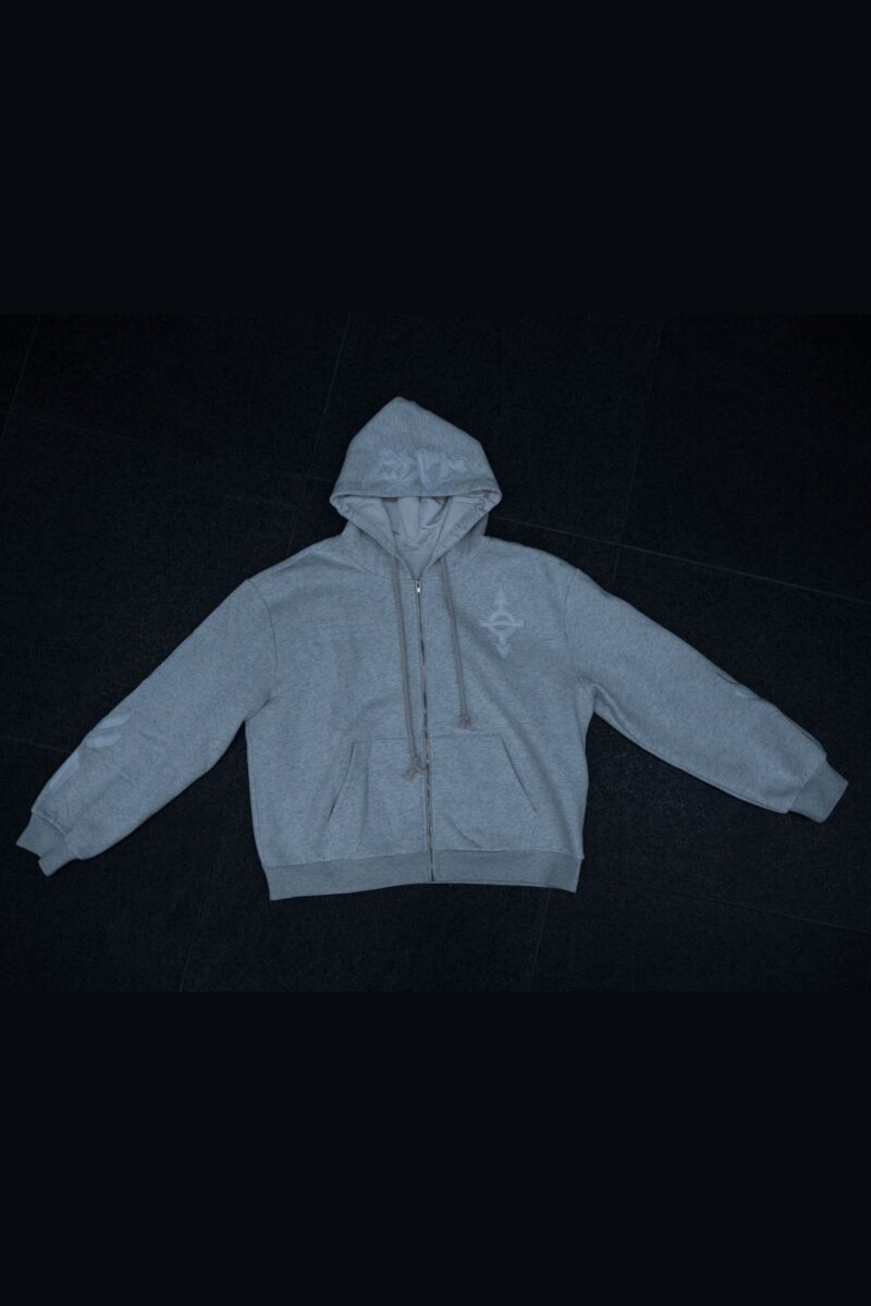 Crafted in classic heather grey from a high-quality cotton blend, this hoodie ensures both comfort and durability.