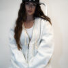 The luxurious silk-lined hood adds a sophisticated touch, while the subtle graphic details on the left chest, sleeve, and hood reflect the Misfit Collection’s rebellious spirit.