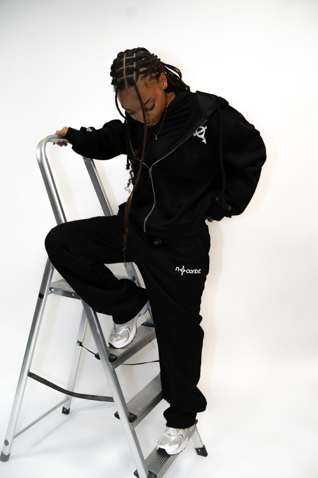 The NoContxt logo on the pockets adds subtle yet iconic branding, while durable drawstrings ensure a customizable fit.