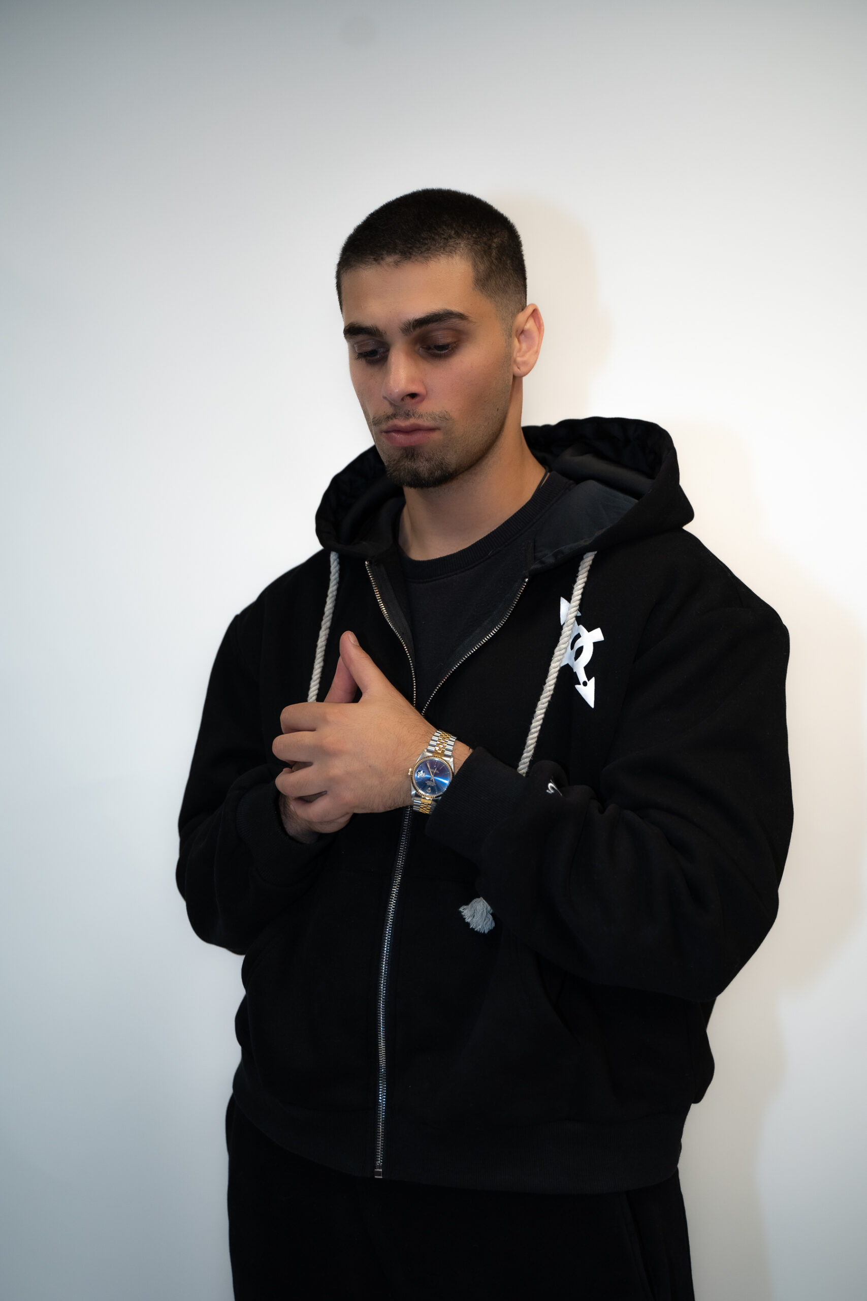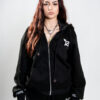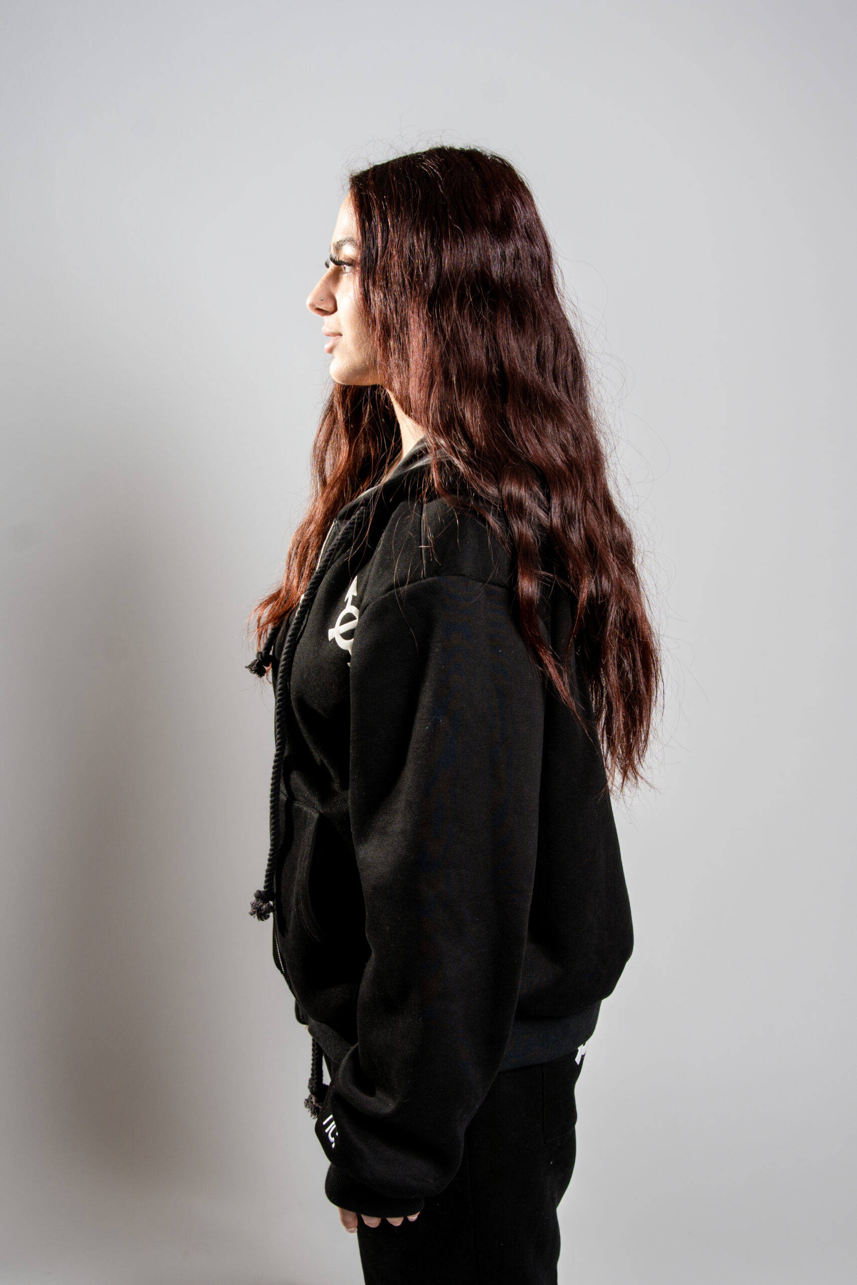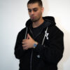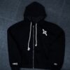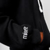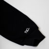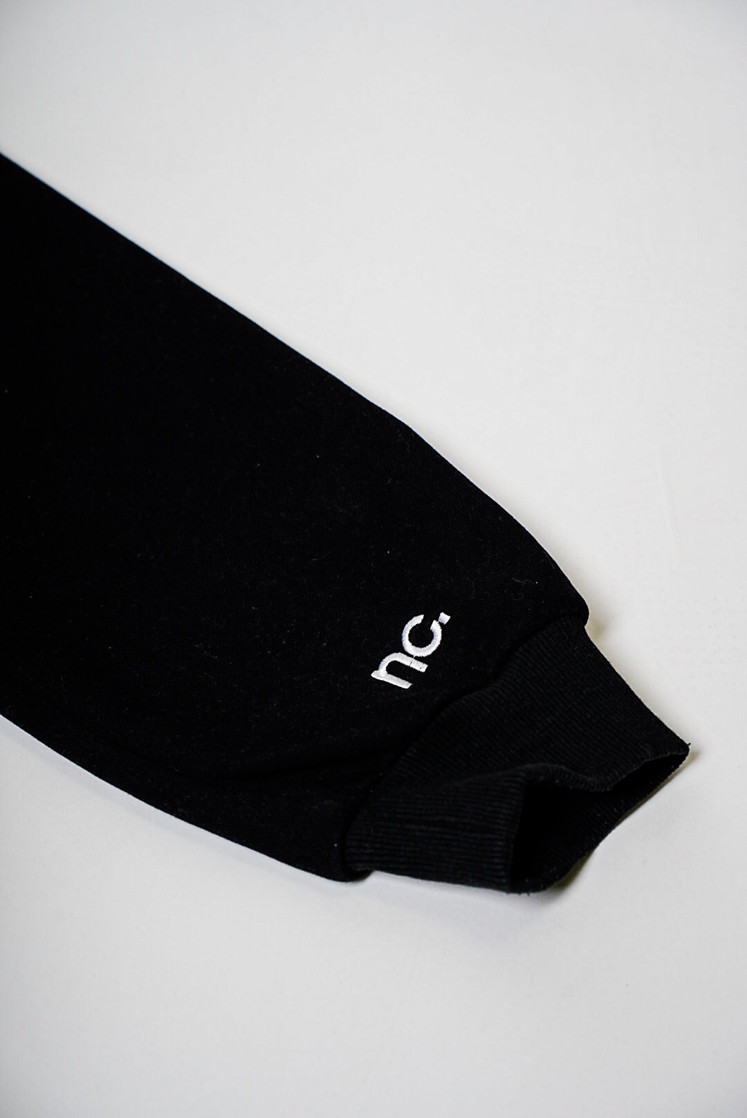 In deep black, this hoodie features “misfit” embroidery on the right sleeve, a minimalist ‘nc’ logo on the left, and a striking graphic on the chest.